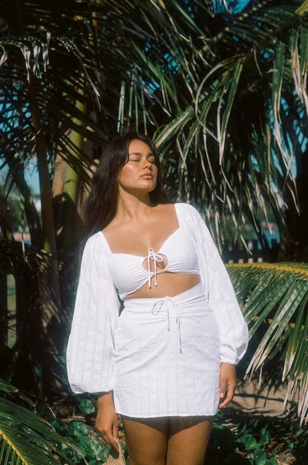 A fashion forward design dripping in feminine details! The Addilyn Dress is made from a natural cotton fabric with contrast stripes throughout. It features full length puff sleeves, keyhole cutout with draw tie detailing at centre bust, cutout at waist and draw tie at centre waist. Pair with the Transparent Mules and Transparent Hoops for your next event! Designed exclusively by Sabo.