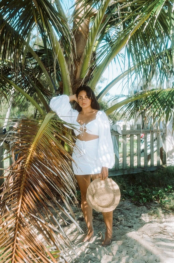 SKU: 7219975225525 Category: Dresses Tags: category:Bold Sleeves, Mini Dresses, primary-color:White, primary-material:Cotton