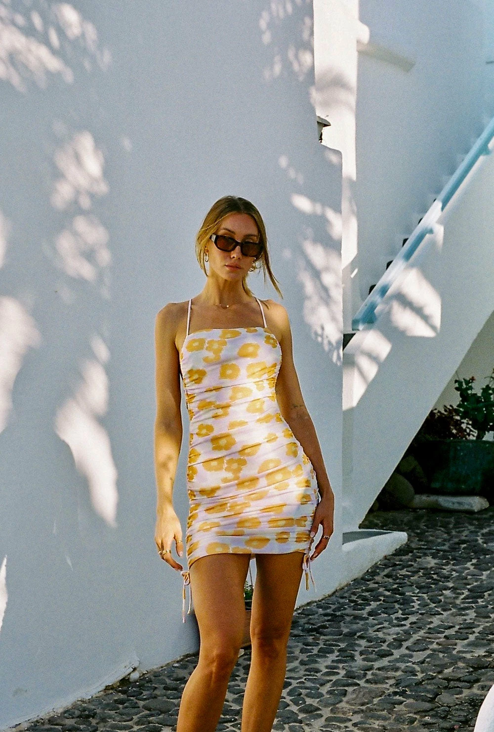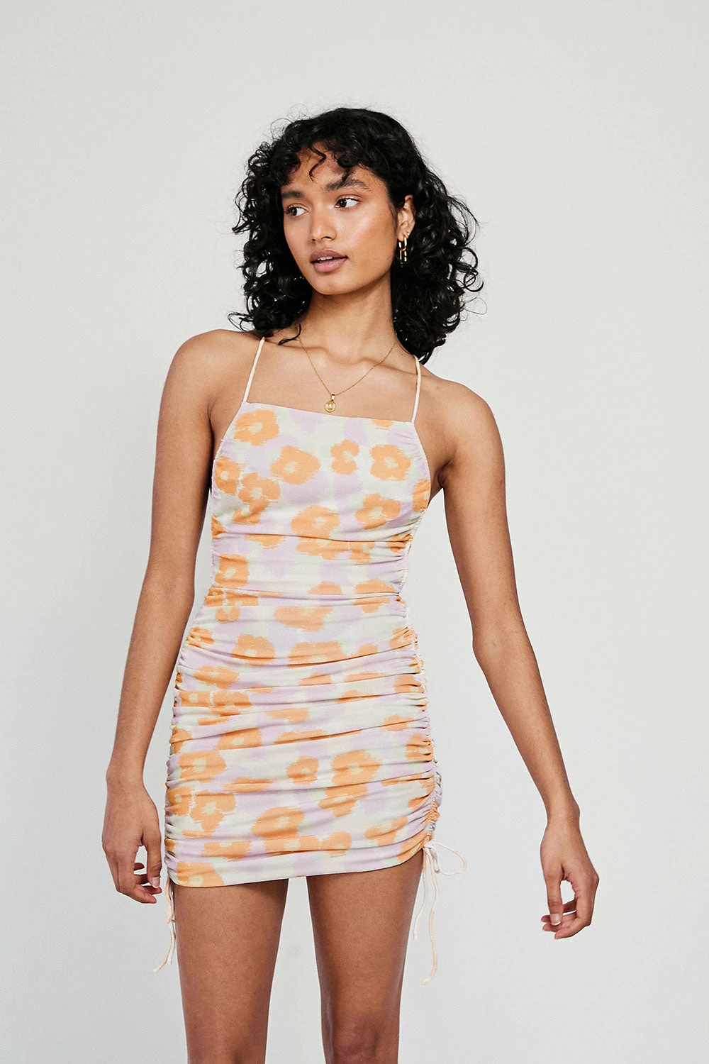 Show off your curves in the Backless Aurora Dress, made from a luxurious slinky fabric with our exclusive smudge floral print. It is a backless style featuring strappy details, straight neckline, body con fit and gathered details at skirt. Dress it up with heels for a night out! Designed exclusively by Sabo.