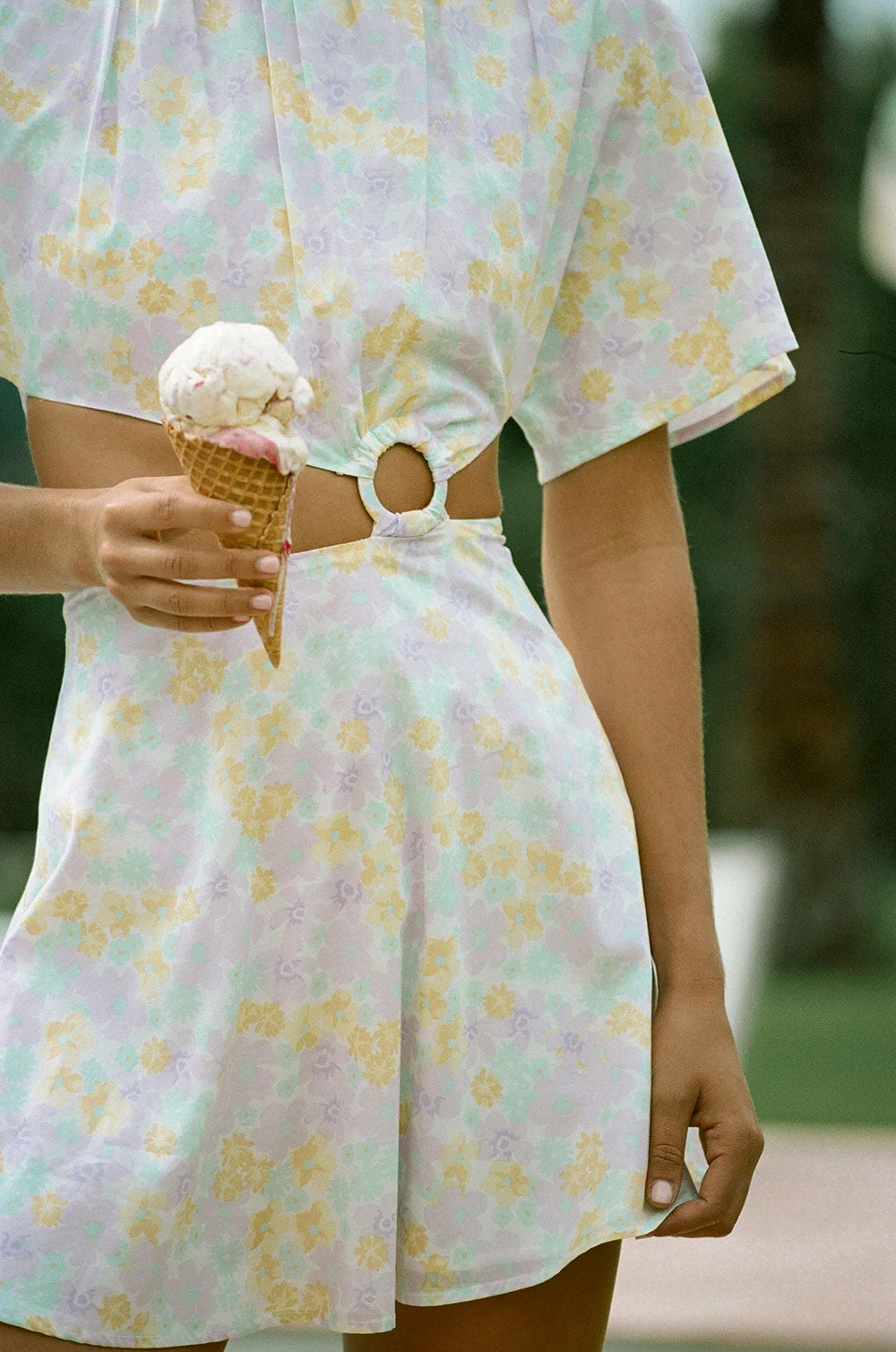 Simple, flattering and featuring an exclusive new print! The Calista Dress is made from a high quality cotton voiel fabric with our lavender field floral print. It features flouncy short sleeves, high rounded neck, cutout at waist with ring detailing and flouncy skirt. Complete the look with Strappy Rafaela Heels and Milana Bag! Designed exclusively by Sabo.