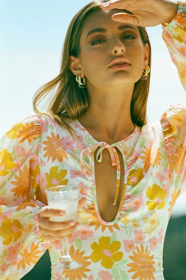 Straight out of our new Take me to Veneto collection, the Ever Dress is made from a stunning cotton voile fabric with our exclusive sunny floral print. It features full length puff sleeves, a high neck with a keyhole cutout and tie at neck and flattering body skimming fit. Pair with the Transparent Mules and Two Toned Twin Hoops! Designed exclusively by Sabo.