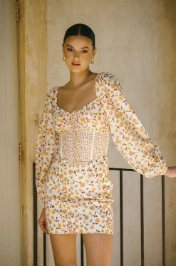 Dripping with details! The Kenzie Dress is made from a high quality natural cotton voile fabric with our exclusive vintage floral print. It features full length puff sleeves, elastic neckline, frill details under bust and waist, lace up at centre front, fitted boned corset waist and fitted skirt. Pair with the Strappy Rafaela Heels and Riella Bag for your next event! Designed exclusively by Sabo.