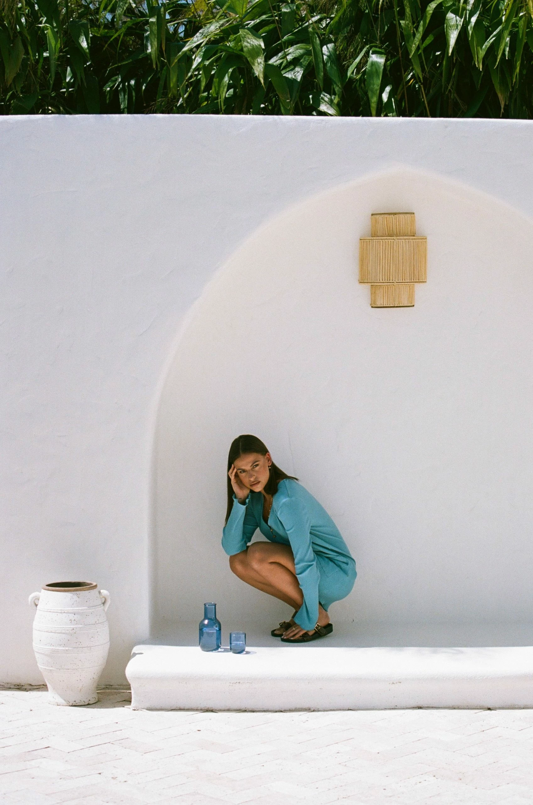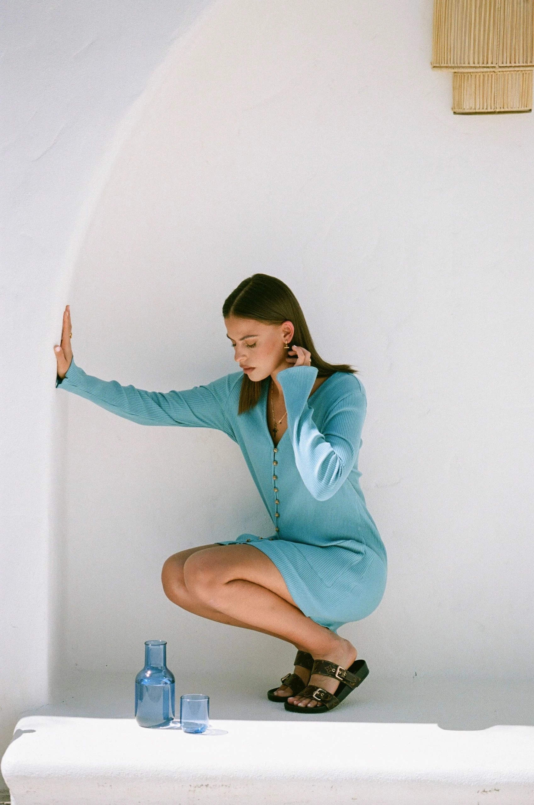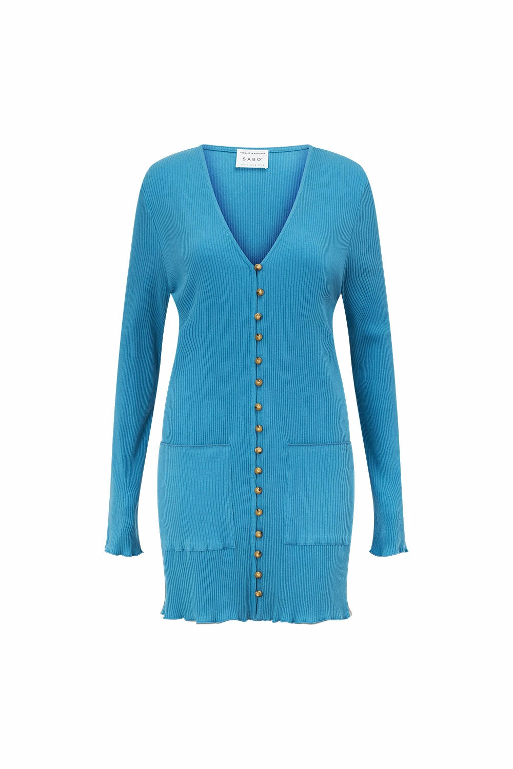 Super comfy and easy-to-wear, the Pax Dress is made from a ribbed fabric in a blue hue. It features full length sleeves, V neckline, twin pockets at front, button detailing down centre front and ruffle hems throughout. Pair with the Jamila Bag for a cute weekend outfit! Exclusively designed by Sabo Skirt.