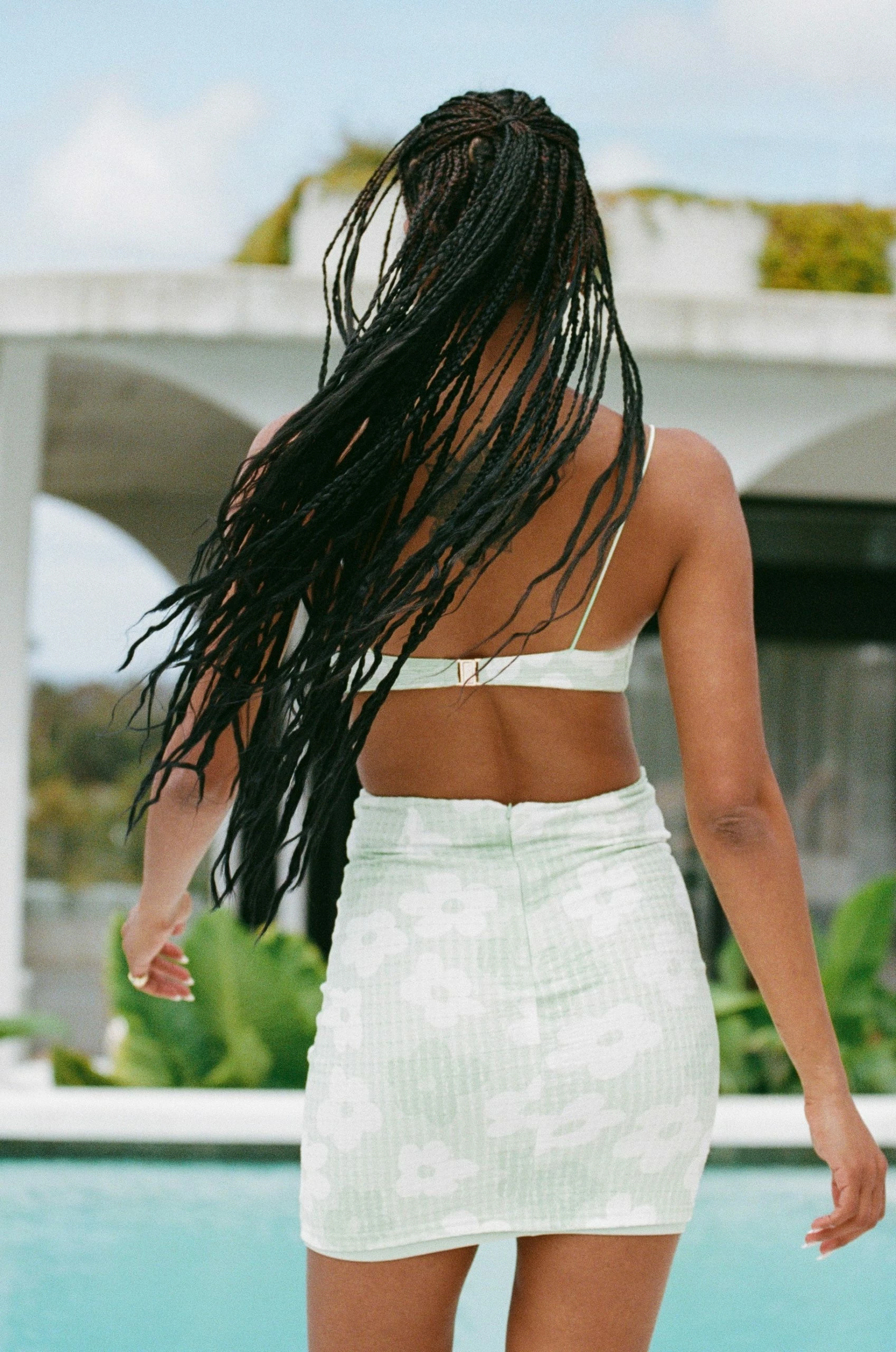 Introducing our After Sunrise collection with the Prae Cutout Dress, featuring our new exclusive Happy Daisy print! It is a fitted mini style with thin rouleau straps, cutouts at waist, gold clip closure details at front and draw detail at centre waist of skirt. Just add slides for the perfect weekend outfit! Designed exclusively by Sabo.