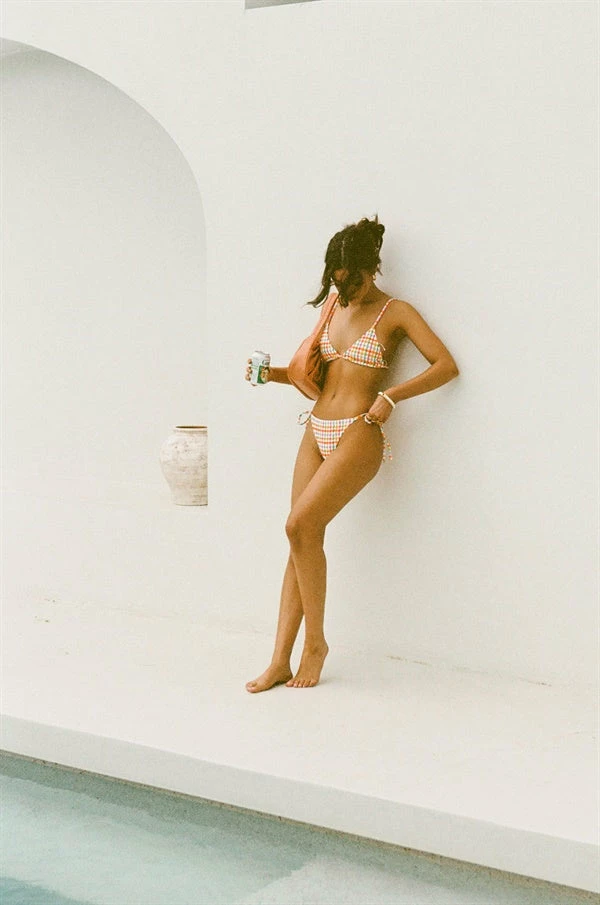 Perfect for vacay, the Sebastian Tie Bottom is made from a textured seersucker fabric in a multi gingham. They are a Brazilian cut and feature string ties at sides. Pair with the Sebastian Tri Top and Jera Sunglasses! Exclusively designed by Sabo.