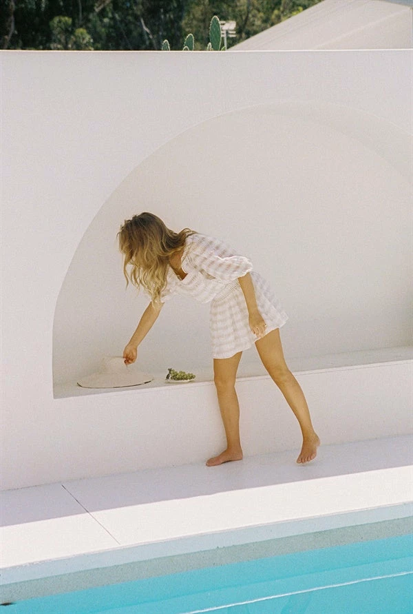 *THIS IS A FINAL SALE ITEM* For the fashion forward Sabo fam, the Talei Dress is made from a lightweight crinkle fabric with a tan plaid throughout. It features 1/2 length puff sleeves, square neckline, shirred waist, frill detailing at top and a flouncy skirt. Get the look with the Kult Barrel Bag and Bold ID Bracelet! Exclusively designed by Sabo.